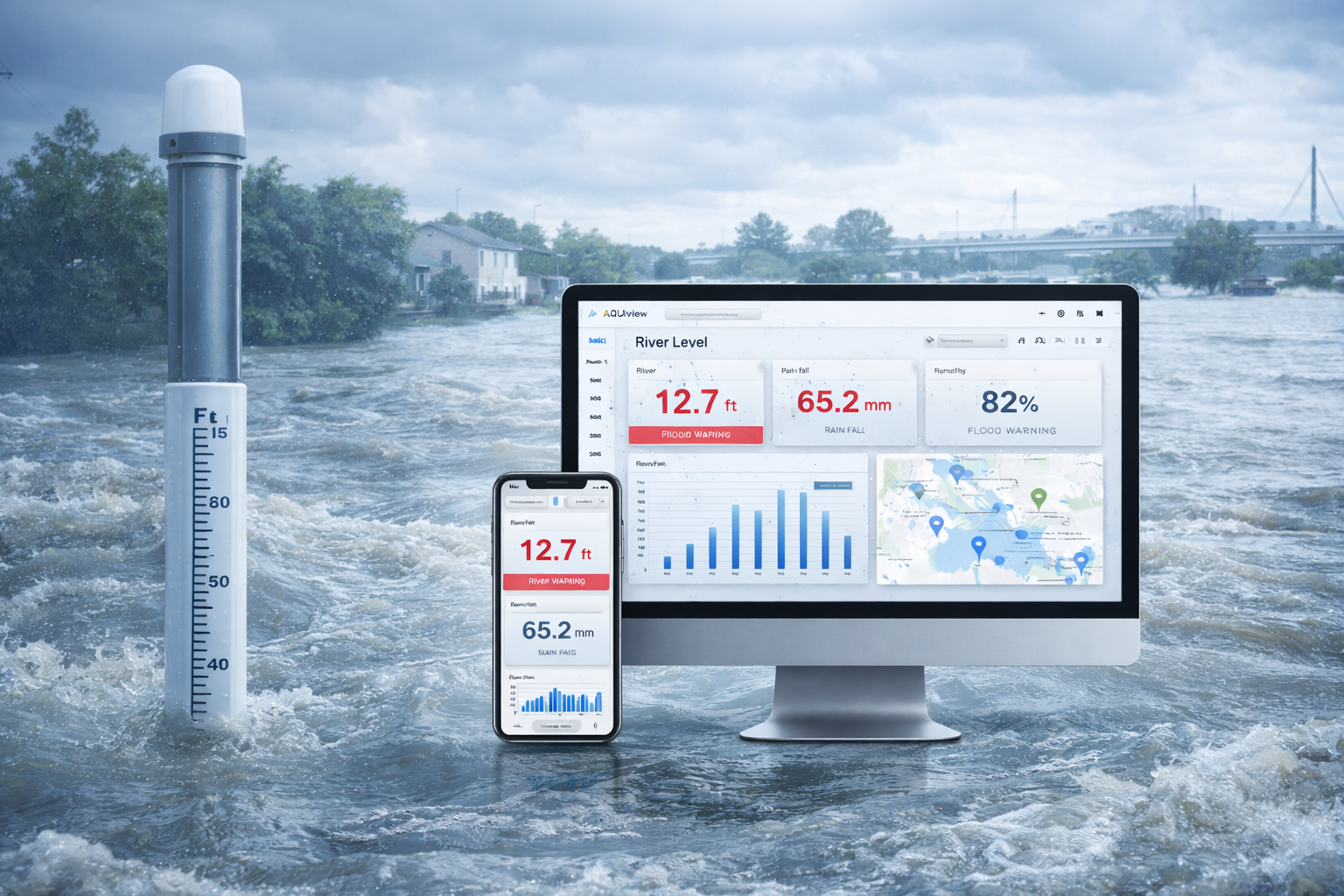 AQUAview is a powerful web-based IoT platform designed to collect, manage, and analyze real-time data across a wide range of applications including environmental monitoring, water quality monitoring, flow and level measurement, flood monitoring, and meteorological observation. The platform provides secure online access through web browsers and mobile devices, enabling stakeholders to monitor assets, review trends, and make informed decisions from anywhere.
