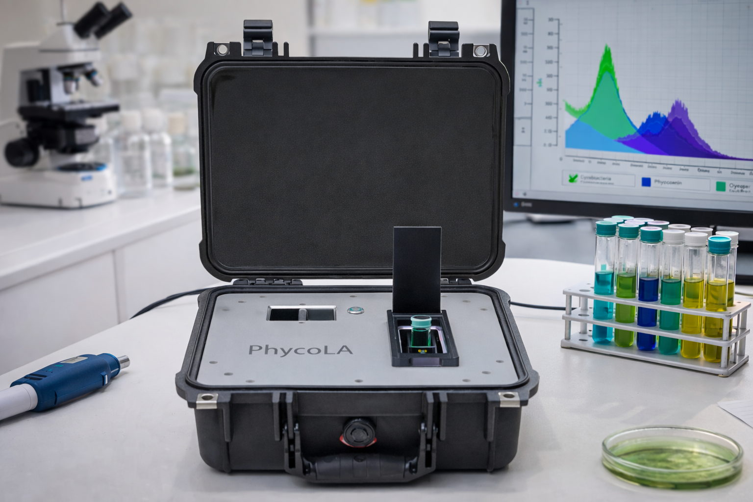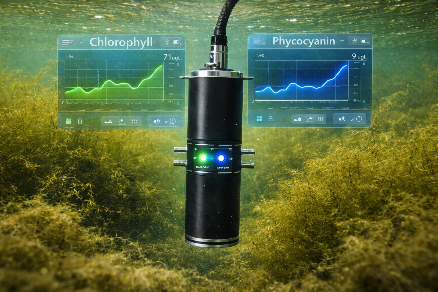 Field-friendly monitoring for blooms and ecological checks, using optical fluorescence methods.
