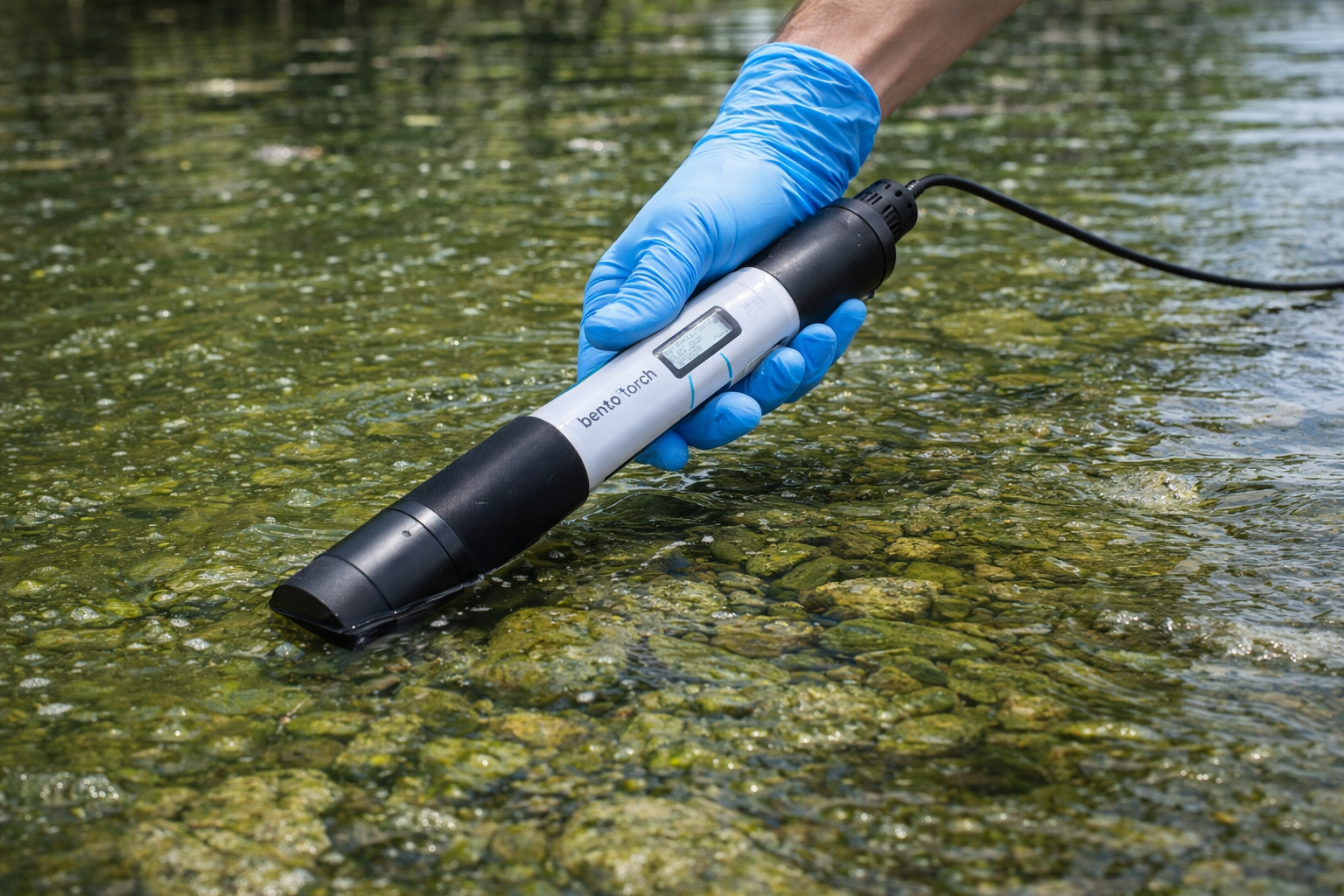Field-friendly monitoring for blooms and ecological checks, using optical fluorescence methods.
